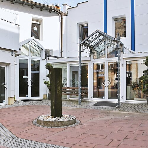 Unsere Feierhalle bietet Sitzplätze für bis zu 40 Personen. Durch eine erweiterbare Bestuhlung können bis zu 50 Sitzplätze geschaffen werden. Parkplätze für Sie und Ihre Gäste sind im Hof vorhanden.