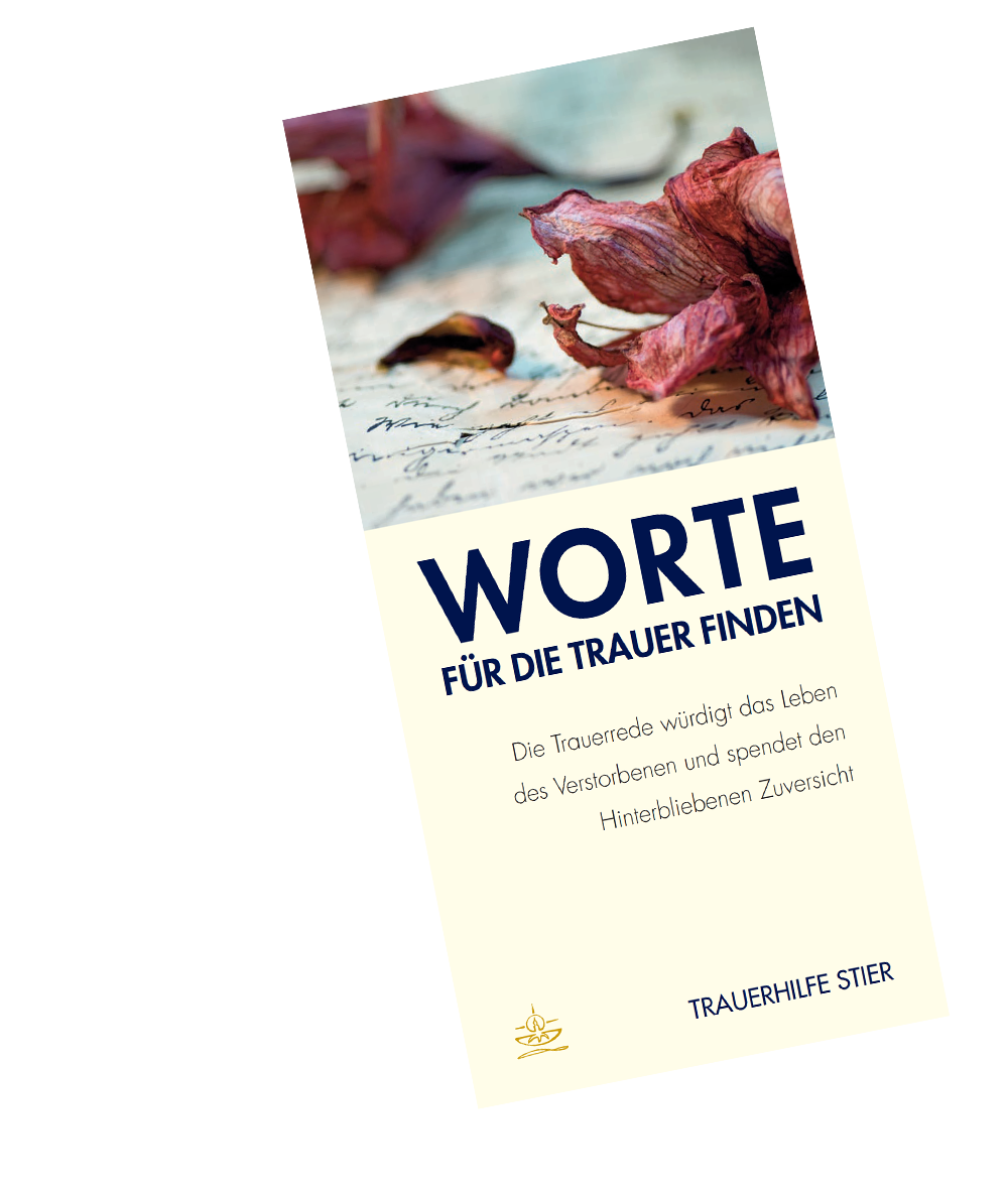 Unsere Broschüre „Worte für die Trauer finden“ bietet Ihnen eine übersichtliche Darstellung über die Leistungen freier Trauerredner sowie Porträts der von uns empfohlenen Redner.